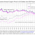The doted lines are the unadjusted annual average Silver price, and the sold lines are the inflation adjusted Silver price. The first thing that becomes obvious is that the unadjusted Silver piece bottomed in the 1930s, in both UK Pounds and US Dollars at £0.07 and $0.25 per troy ounce respectively.